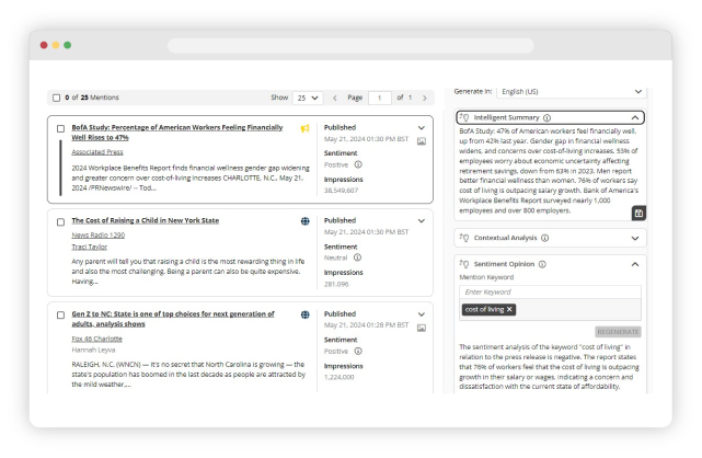 • Ensure you never miss a mention and stay informed about your media coverage.