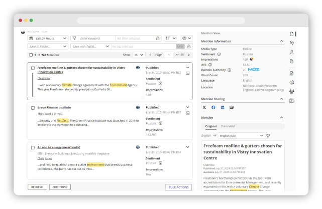 • Effortlessly manage coverage, understand sentiment, and measure your share of voice.